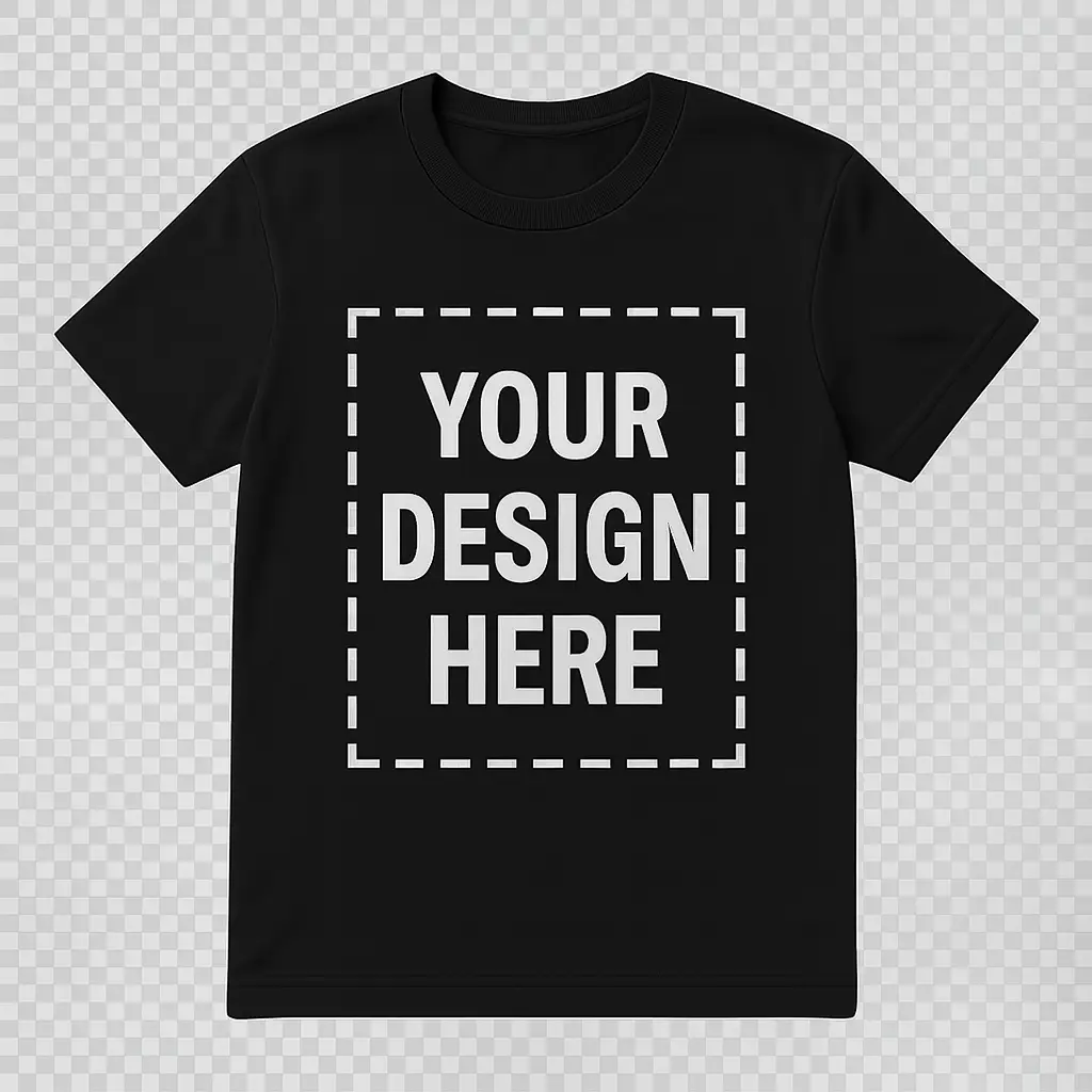 Unleash your creativity with our Customizable Black T-Shirt, the perfect blank canvas for your unique style or brand! Whether you’re looking to create custom apparel for your business, team, event, or personal wardrobe, this high-quality t-shirt is designed to bring your vision to life. The front features a dashed outline box with the text “YOUR DESIGN HERE”, making it easy to visualize where your custom logo, artwork, or message will shine.